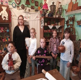 Первую неделю второй четверти первоклассники вместе с учительницей К. А. Блиновой завершили экскурсией в школьный музей "Предметы старинного быта".