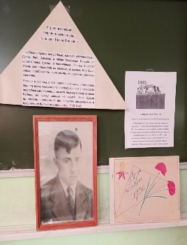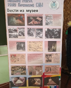 В школьном музее семиклассники оформили стенд «Вести из музея», пятиклассники распечатали письма с фронта нашего земляка Конькова Ивана Никитича, ему было только 19 лет. Чтобы сохранить память о мужественном человеке, в нашем музее учащиеся 5, 6, 8 классов посетили экскурсию «Письма, опалённые войной» и выставку одного экспоната «Говорят погибшие герои». Это альбом 14 копий писем Конькова Ивана Никитича, написанных из военного училища г. Тюмени и с фронта. Эти письма «мамаша Василиса Васильевна, сёстры Лена и Грапа, д. Алексей и т. Настасья» ждали с нетерпением. Письма от Ивана согревали душу. В них он заботился о матери и сёстрах. Часто учил, как надо им подготовиться к зиме, чтобы легче её пережить. Иван передавал тёплые приветы всем колхозникам, с которыми вместе работал на ферме, ребятам и девчатам, с которыми вечерами ходил в клуб на гулянки, любимой девушке Марье Павловне, которую он обещал никогда не забыть. С глубоким душевным чувством Ваня вспоминает о своих учителях в школе, которым «тоже обязательно просит передать привет». Все его письма наполнены нежностью, заботой и любовью.